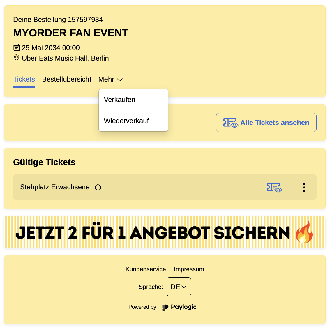 Wird hingegen „Auf Tickets nur über MyOrder zugreifen“ aktiviert, werden Fans