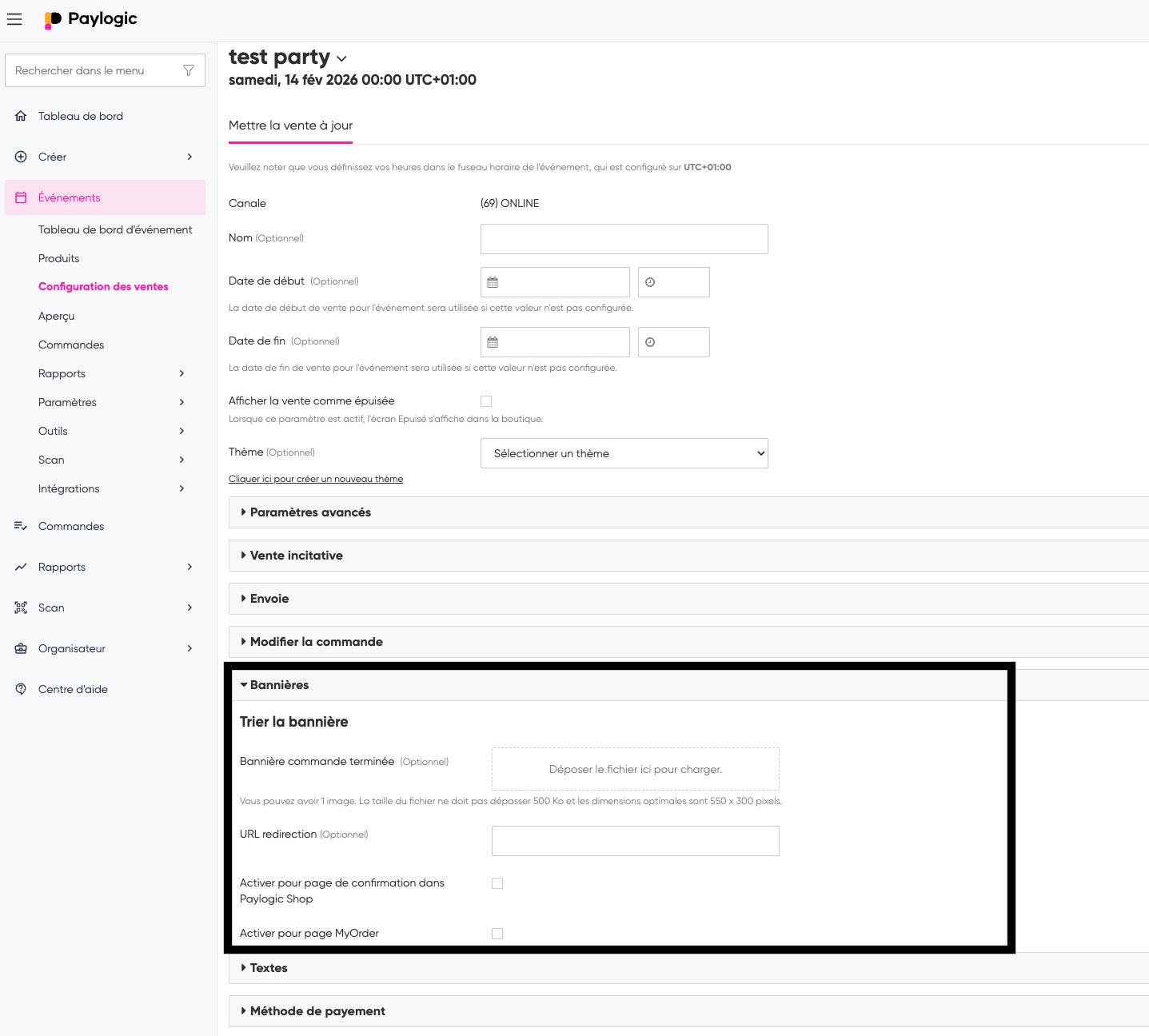 - Vous avez également la possibilité d'ajouter la bannière à la page de confirmation dans Paylogic Shop et à la page MyOrder.