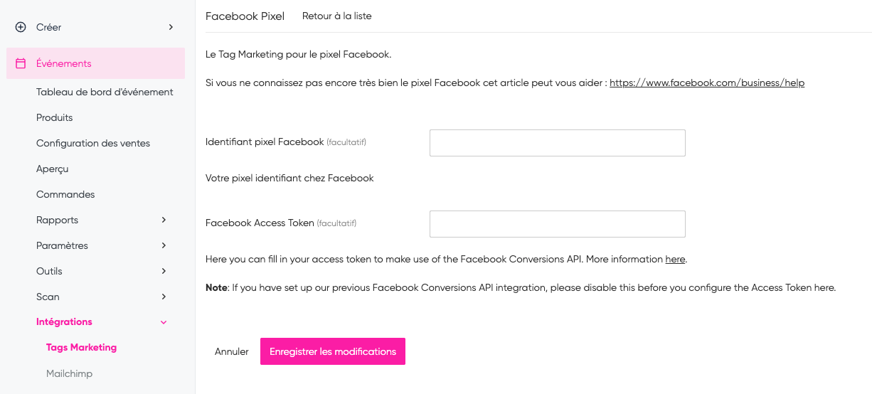 Vous souhaitez utiliser les mêmes pixels de suivi pour chaque événement ? Dans ce cas, contactez votre responsable de la réussite client.