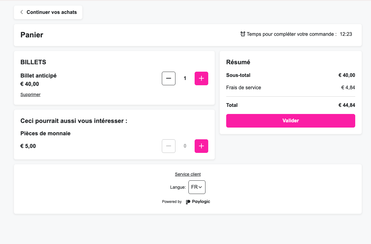 - Vérifiez toujours une seconde fois que les produits additionnels apparaissent bien dans la billetterie au moment du paiement. Cela ressemble à ceci :