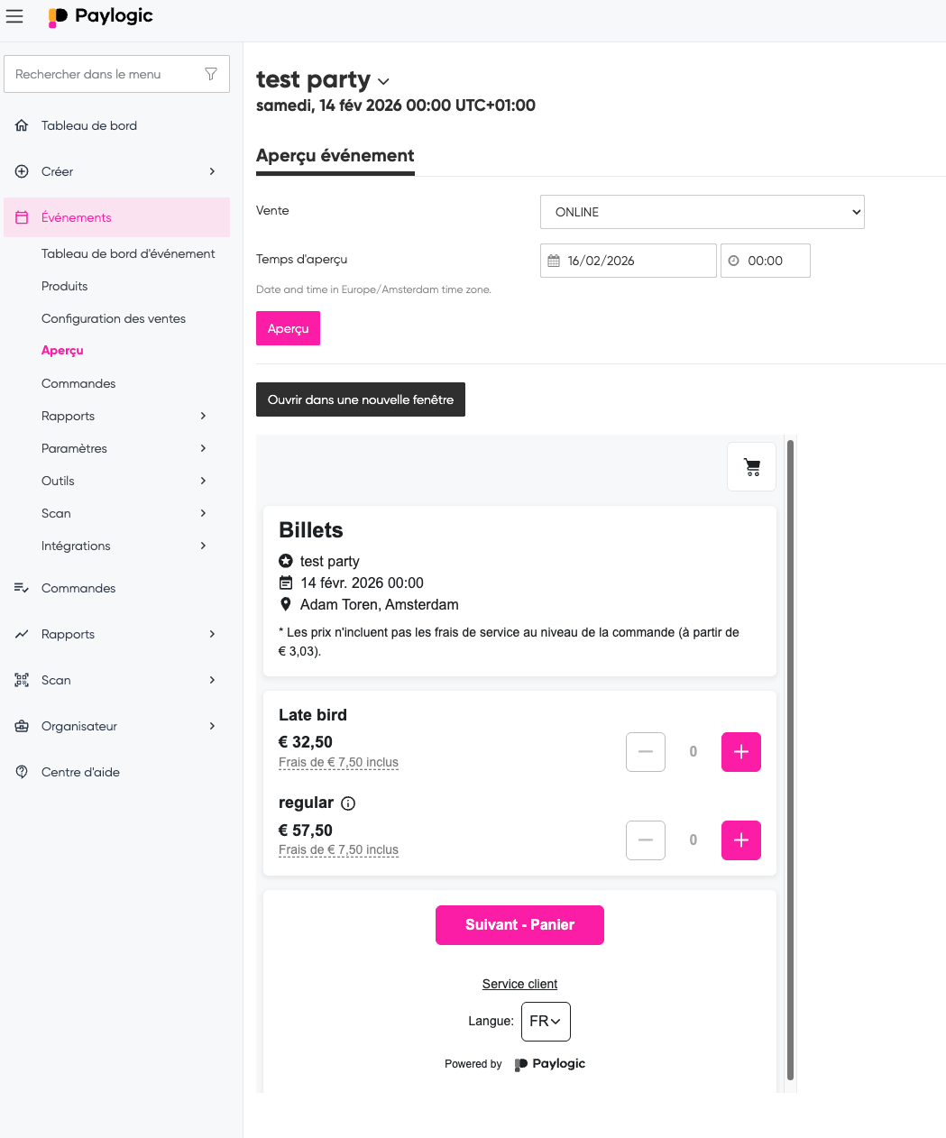 Prévisualiser la billetterie